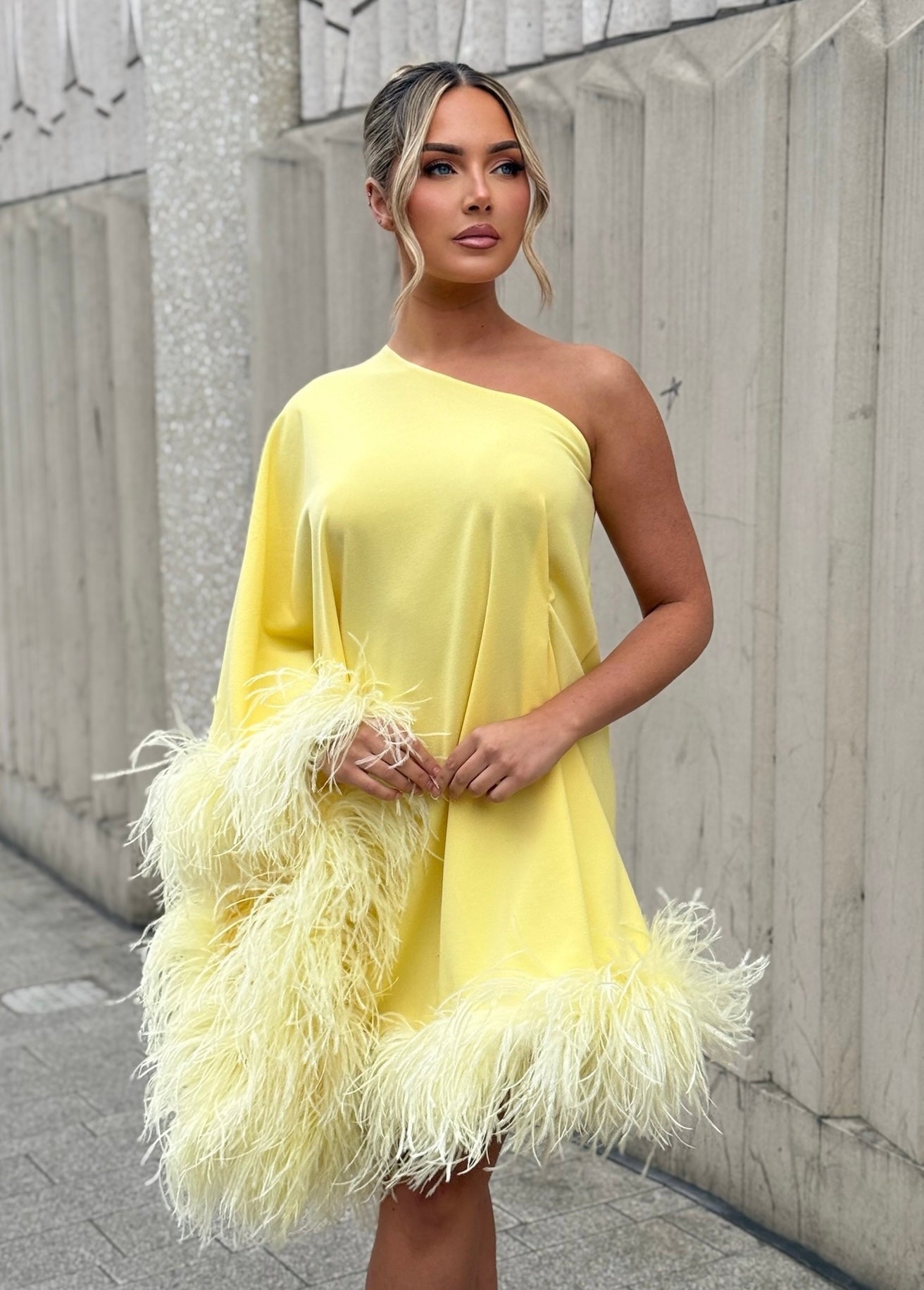 Long Sleeve Mini Dress with Ostrich Feathers